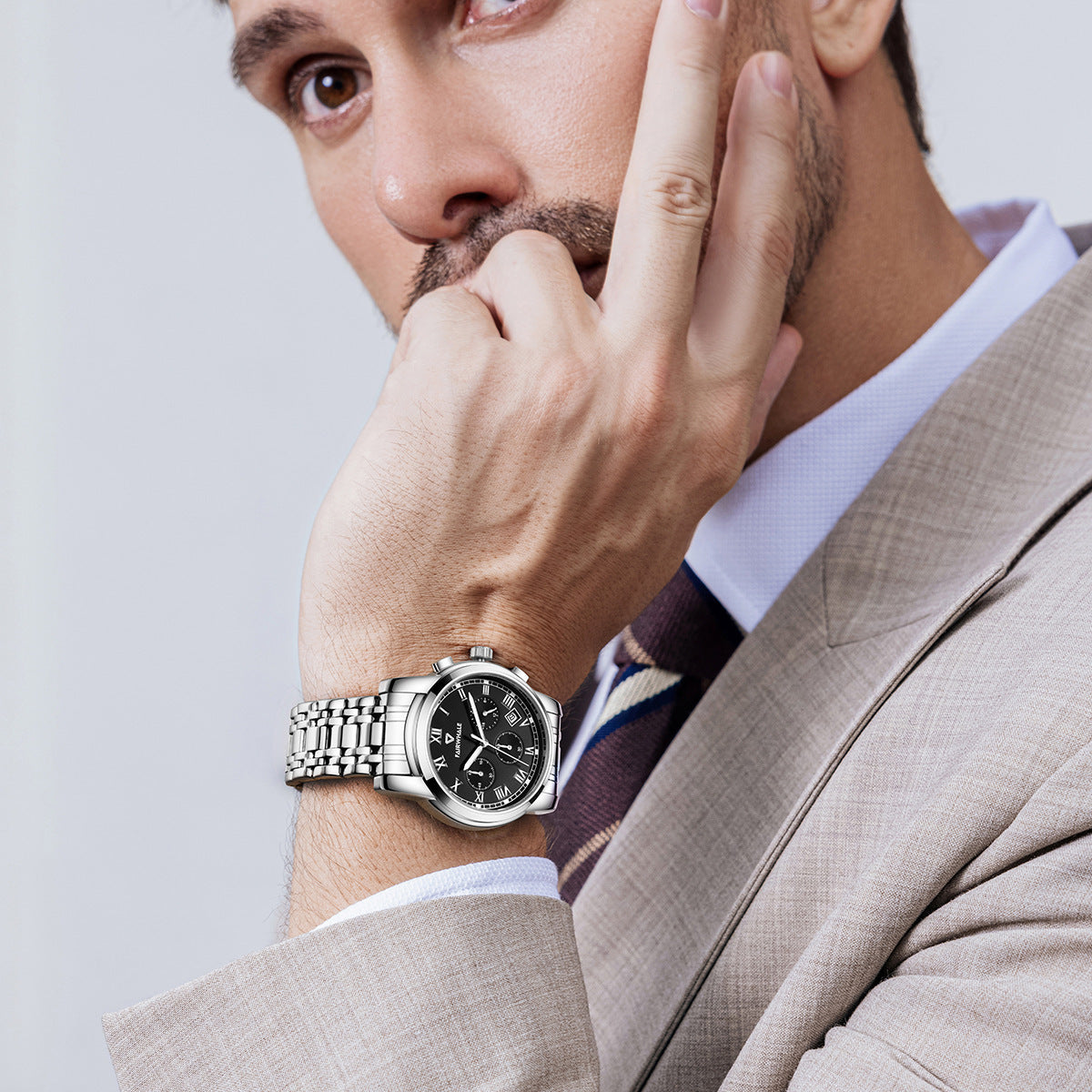 Das Gehäuse aus starkem Edelstahl bietet nicht nur eine hochwertige Optik, sondern auch beeindruckende Langlebigkeit. Die Chronographen-Funktionen (Stoppuhr) ermöglichen dir präzises Messen von Zeitabschnitten, ideal für sportliche Einsätze oder geschäftliche Termine.